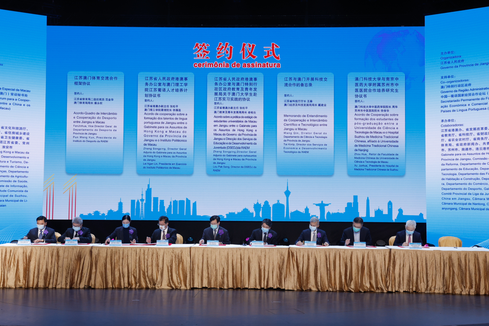 12月9日下午,在澳门江苏周开幕式暨第十一届江苏—澳门·葡语国家工商峰会上,省科技厅王秦厅长与澳门特区政府经济及科技发展局戴建业局长共同签署了《苏澳开展科技交流合作的备忘录》,这是江苏与澳门首次签署政府层面的科技合作协议,也是落实江苏省政府与澳门特区政府“十四五”期间苏澳重点领域合作框架协议的具体举措。根据备忘录,苏澳科技管理部门之间将建立长期稳定的科技交流合作工作机制,共同组织技术交流对接活动,共同支持双方创新实体间开展科技项目合作,共同促进澳门青年来苏创新创业,共同支持江苏企业赴澳拓展与葡语国家科技合作。