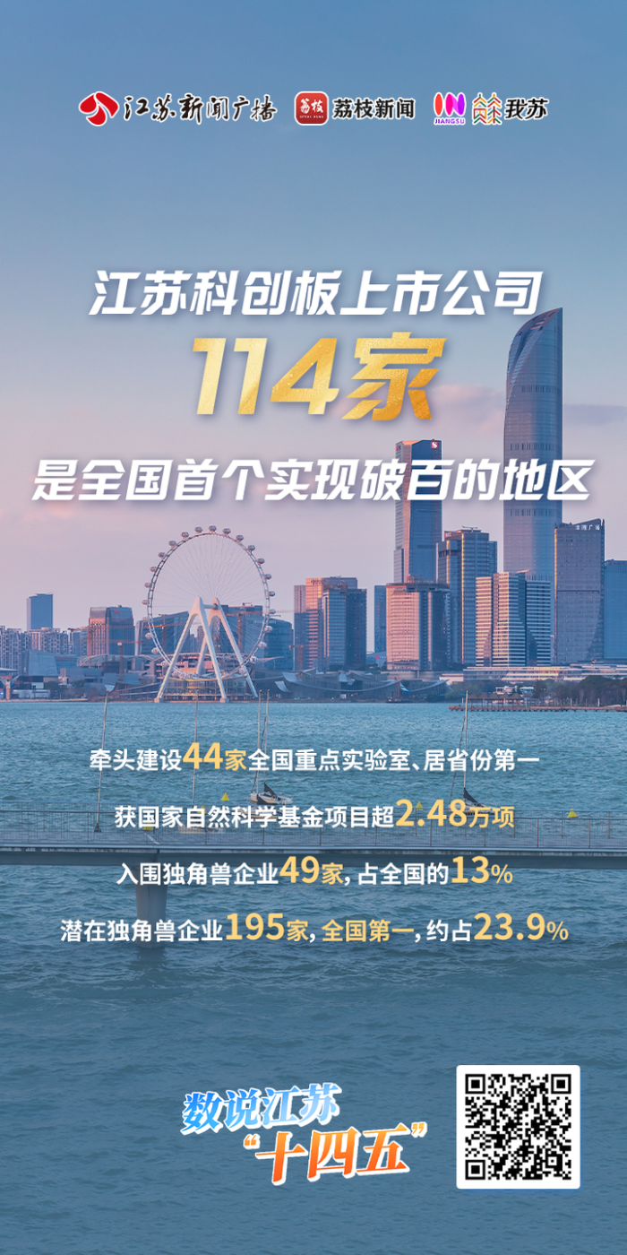 企业是创新的主体,是推动创新创造的生力军。数据显示,江苏全社会85%的研发投入和89%的发明专利源自企业。截至目前,全省高新技术企业有望超6.1万家,科技型中小企业预计约9.4万家,科创板上市公司达114家(全国首个破百),独角兽与潜在独角兽企业数量居全国前列。