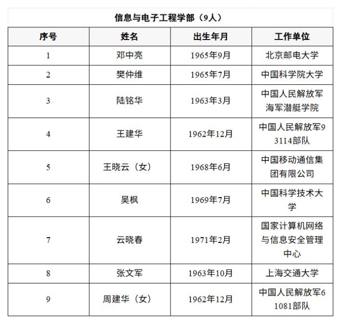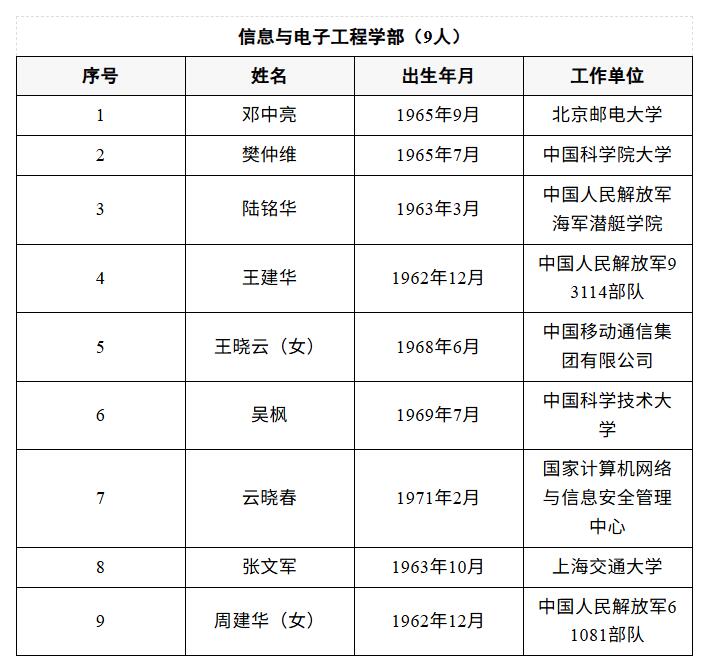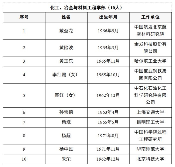 新当选的中国科学院院士平均年龄57.2岁,最小年龄44岁,最大年龄66岁,60岁(含)以下的占67.1%,女性科学家有5人当选。新当选的中国工程院院士中,有6位扎根西部边远地区的专家,有8位女性科学家。